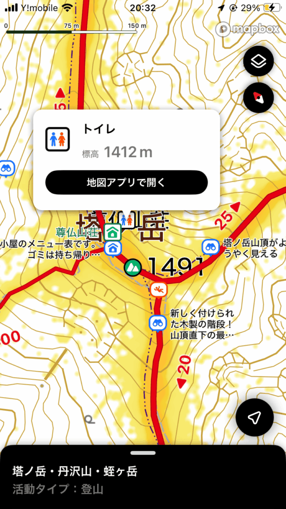 山はいつトイレに辿り着けるかが不透明なので、事前にYAMAPなどでトイレの場所を確認し、トイレ計画を立てておくと安心です。